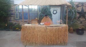 Pops at Halloween as Cousin Itt family haunted house.